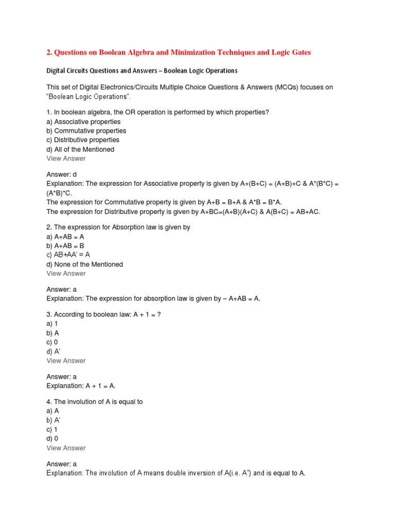 Boolean Algebra Exam Questions And Answers Pdf
